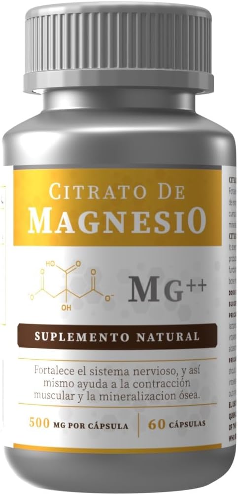 Citrato de Magnesio 500 mg – 60 Cápsulas | Alta Absorción | Soporte para Huesos, Músculos y Sistema Nervioso | Suplemento Premium